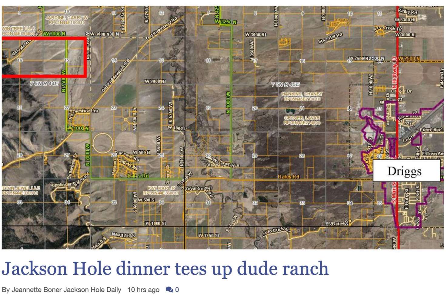 The site currently consists of 26 long rectangular "old town" Driggs city lots. You might know the property as the sage fields that are lined with a buckrail fence west of the Driggs 5th Street Park.